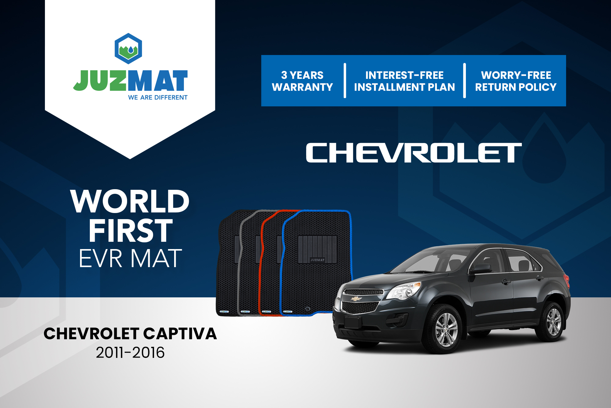 All our car mats are made to measure to ensure the perfect fit for your specific model. Juzmat EVR mat is 10x more durable than your regular mat. Shop confidently with our 3 years warranty promise!