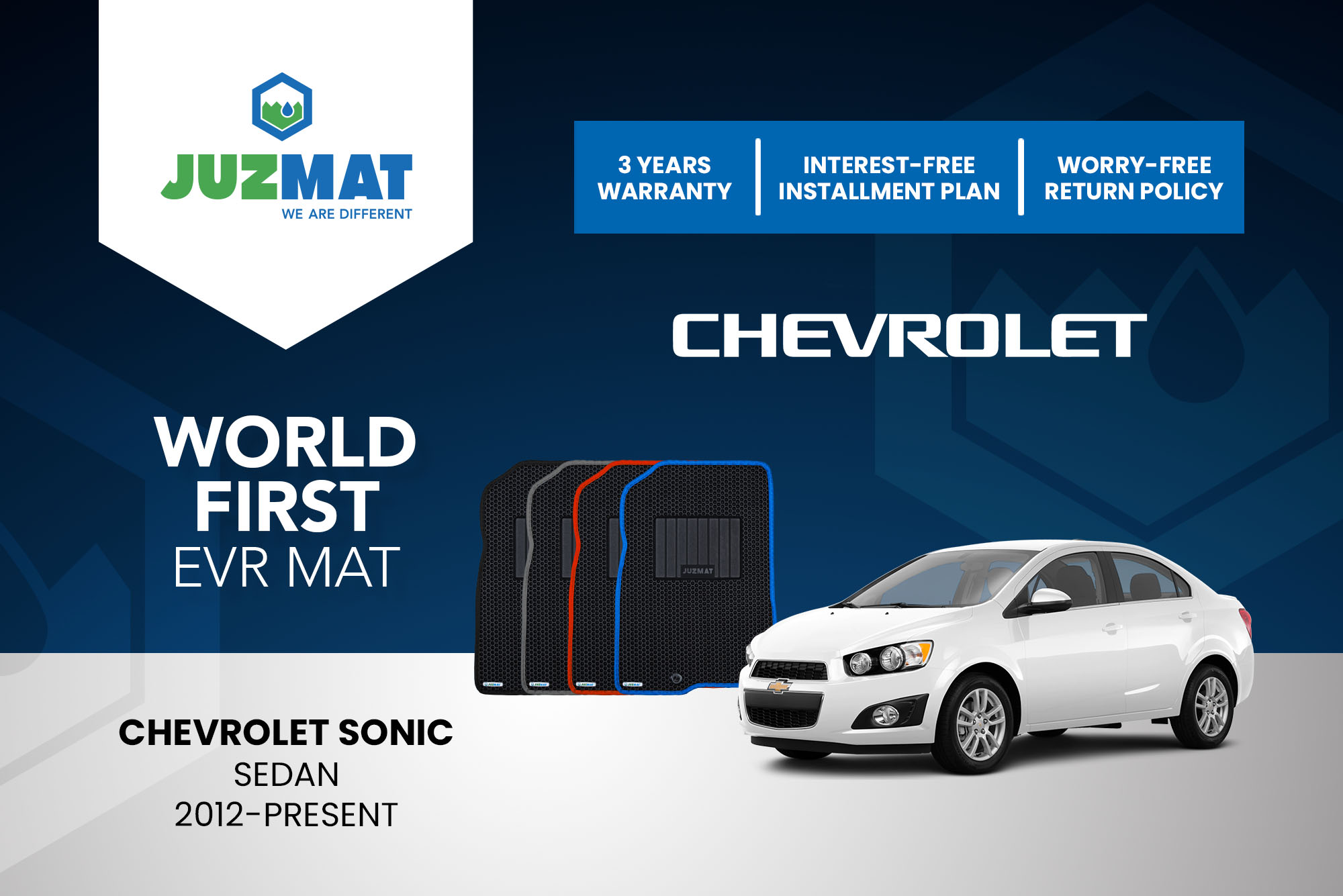 All our car mats are made to measure to ensure the perfect fit for your specific model. Juzmat EVR mat is 10x more durable than your regular mat. Shop confidently with our 3 years warranty promise!