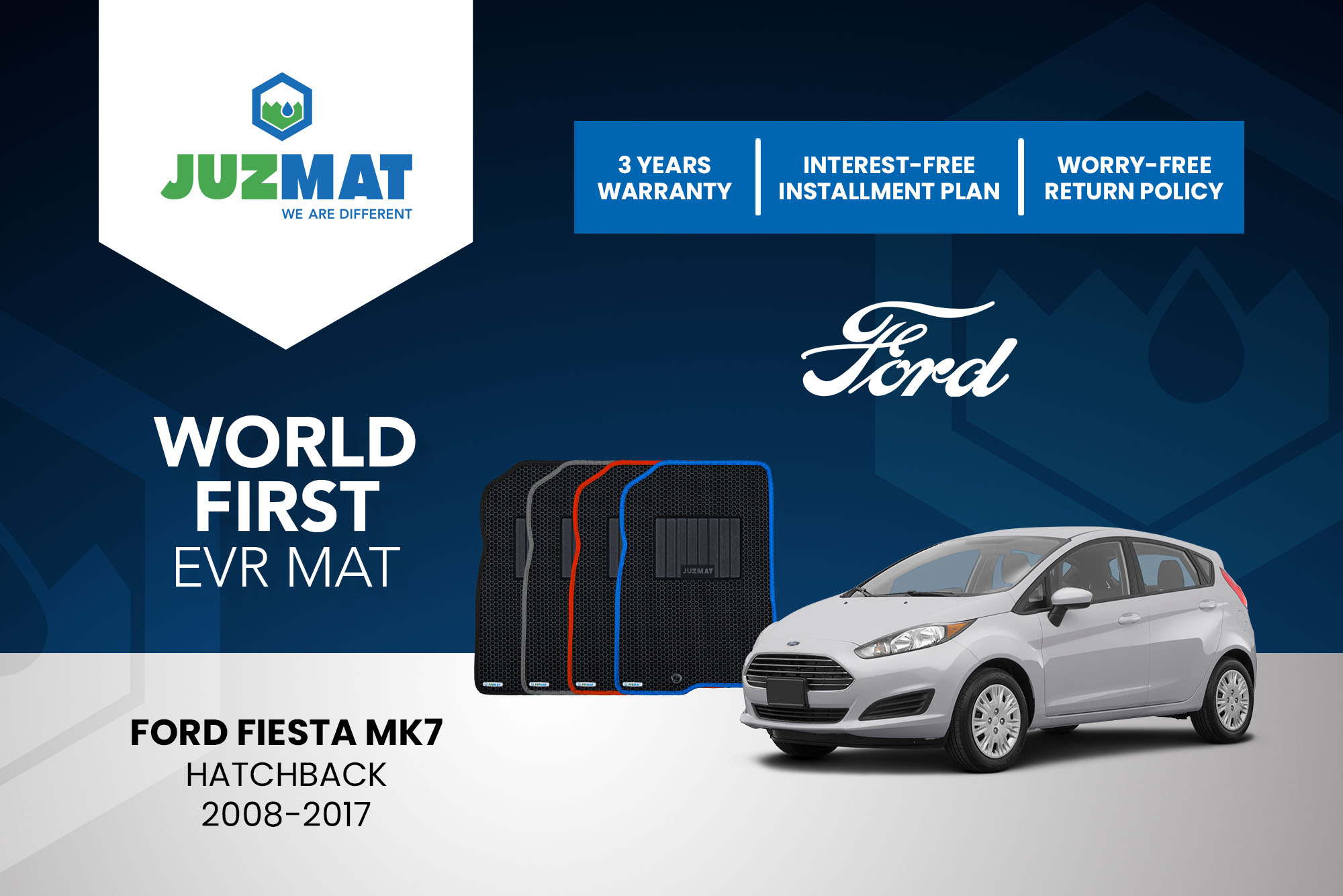 All our car mats are made to measure to ensure the perfect fit for your specific model. Juzmat EVR mat is 10x more durable than your regular mat. Shop confidently with our 3 years warranty promise!