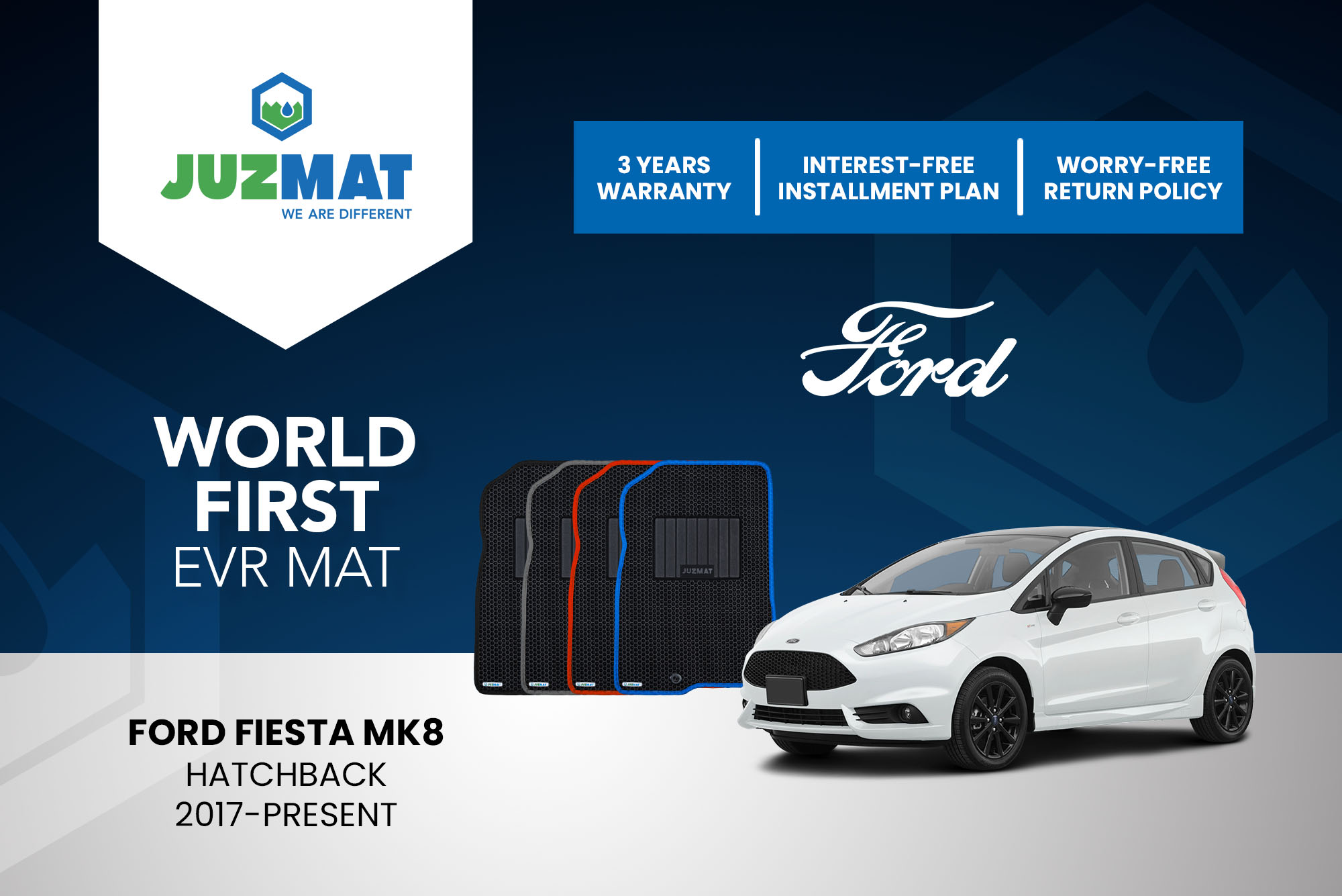 All our car mats are made to measure to ensure the perfect fit for your specific model. Juzmat EVR mat is 10x more durable than your regular mat. Shop confidently with our 3 years warranty promise!