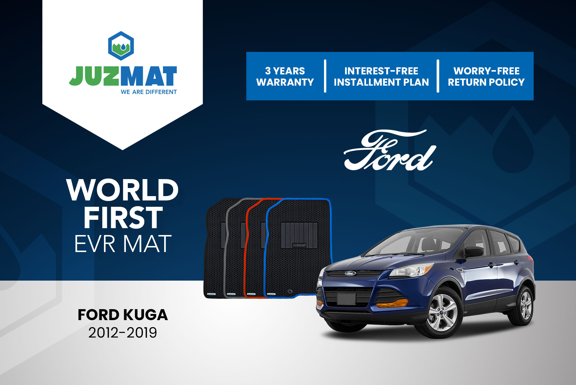 All our car mats are made to measure to ensure the perfect fit for your specific model. Juzmat EVR mat is 10x more durable than your regular mat. Shop confidently with our 3 years warranty promise!