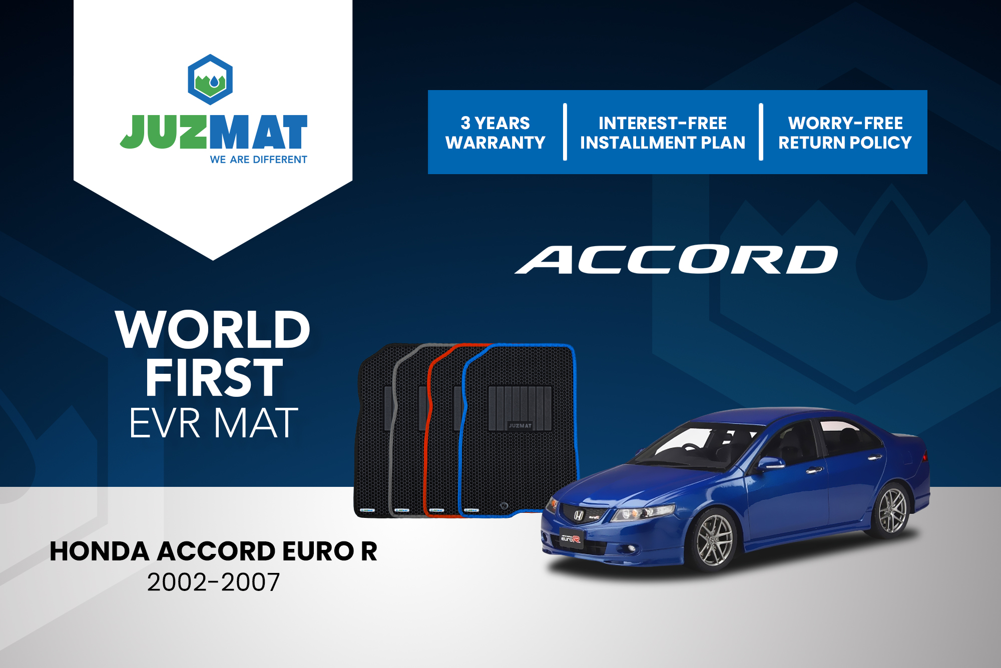 All our car mats are made to measure to ensure the perfect fit for your specific model. Juzmat EVR mat is 10x more durable than your regular mat. Shop confidently with our 3 years warranty promise!