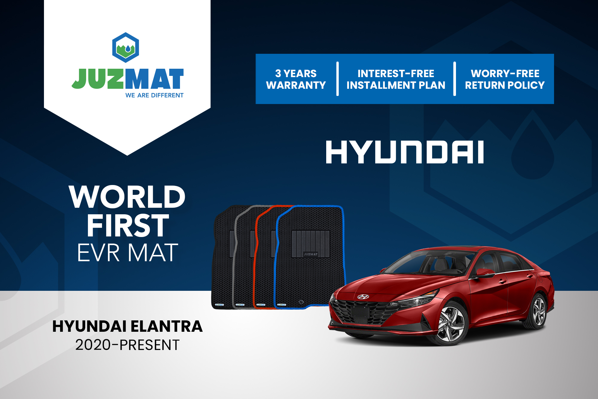 All our car mats are made to measure to ensure the perfect fit for your specific model. Juzmat EVR mat is 10x more durable than your regular mat. Shop confidently with our 3 years warranty promise!