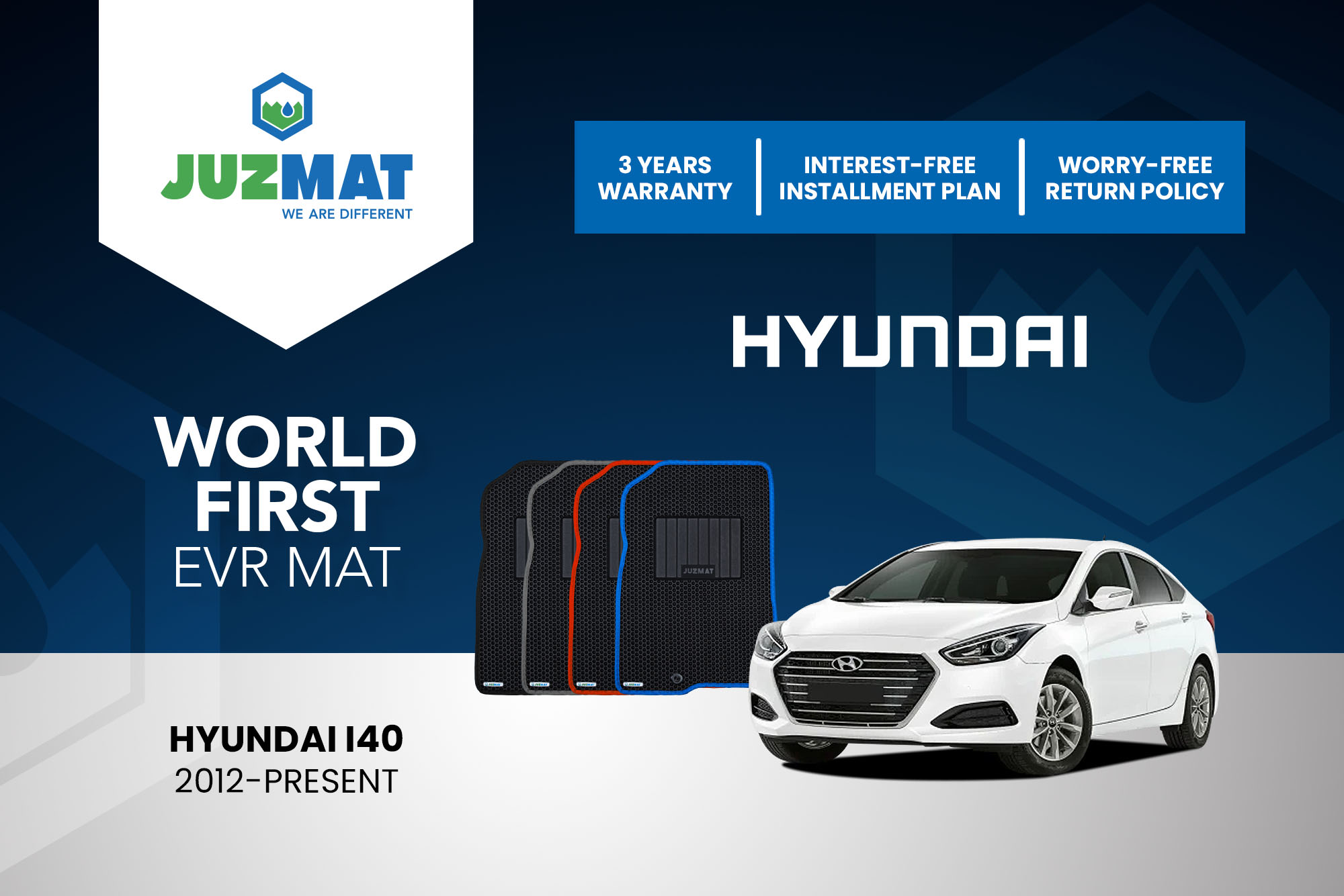All our car mats are made to measure to ensure the perfect fit for your specific model. Juzmat EVR mat is 10x more durable than your regular mat. Shop confidently with our 3 years warranty promise!