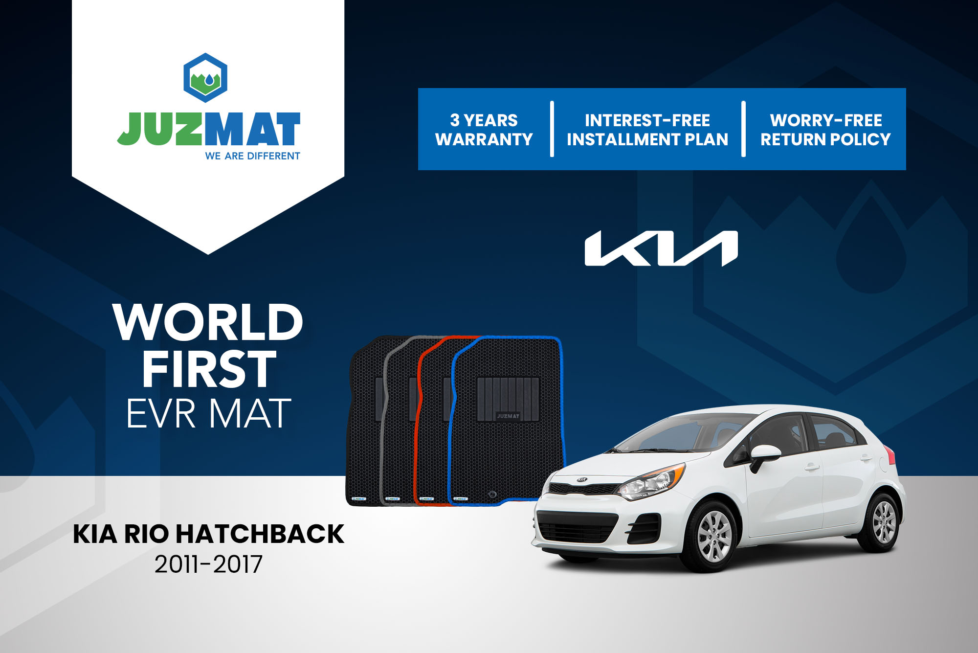 All our car mats are made to measure to ensure the perfect fit for your specific model. Juzmat EVR mat is 10x more durable than your regular mat. Shop confidently with our 3 years warranty promise!