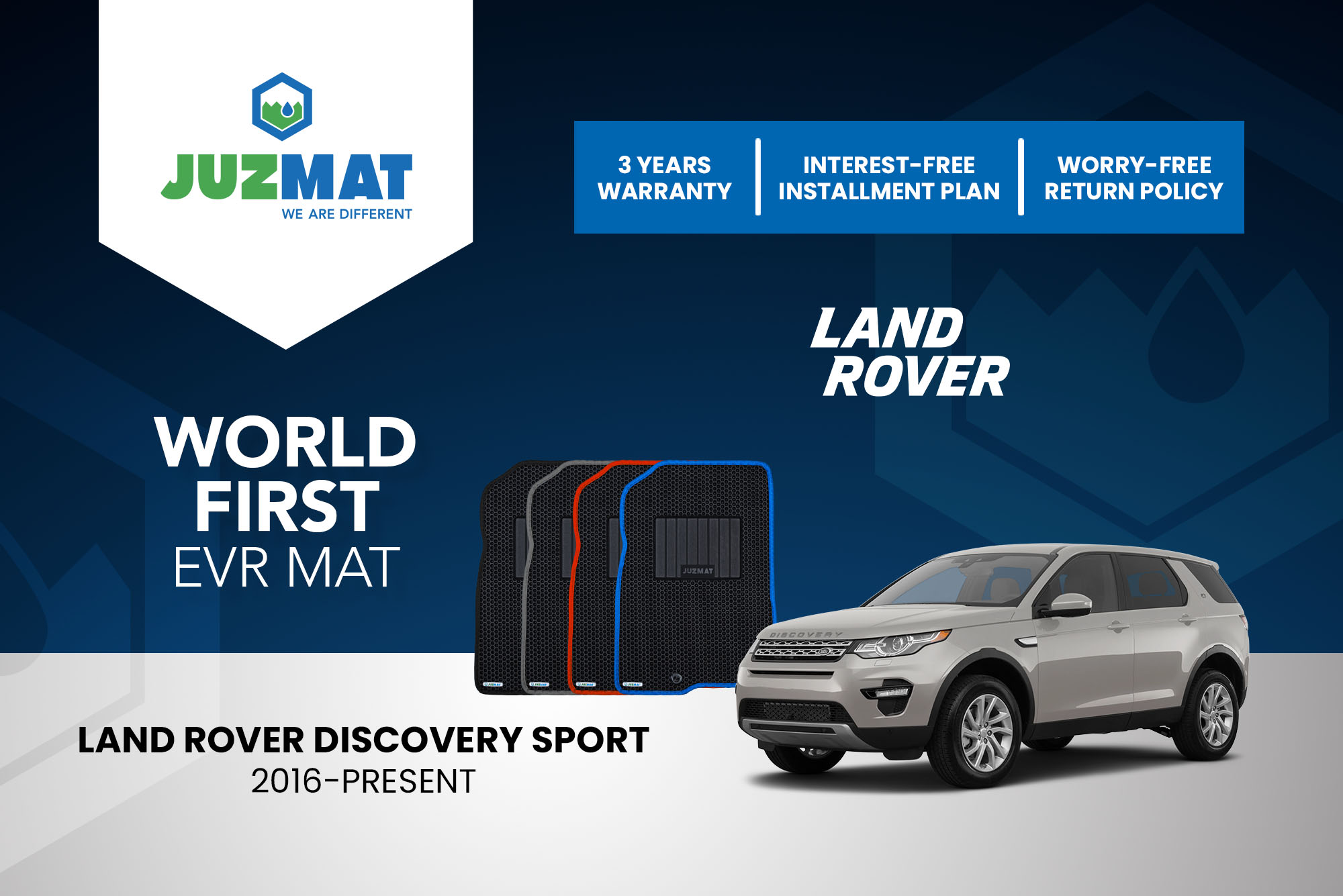 All our car mats are made to measure to ensure the perfect fit for your specific model. Juzmat EVR mat is 10x more durable than your regular mat. Shop confidently with our 3 years warranty promise!