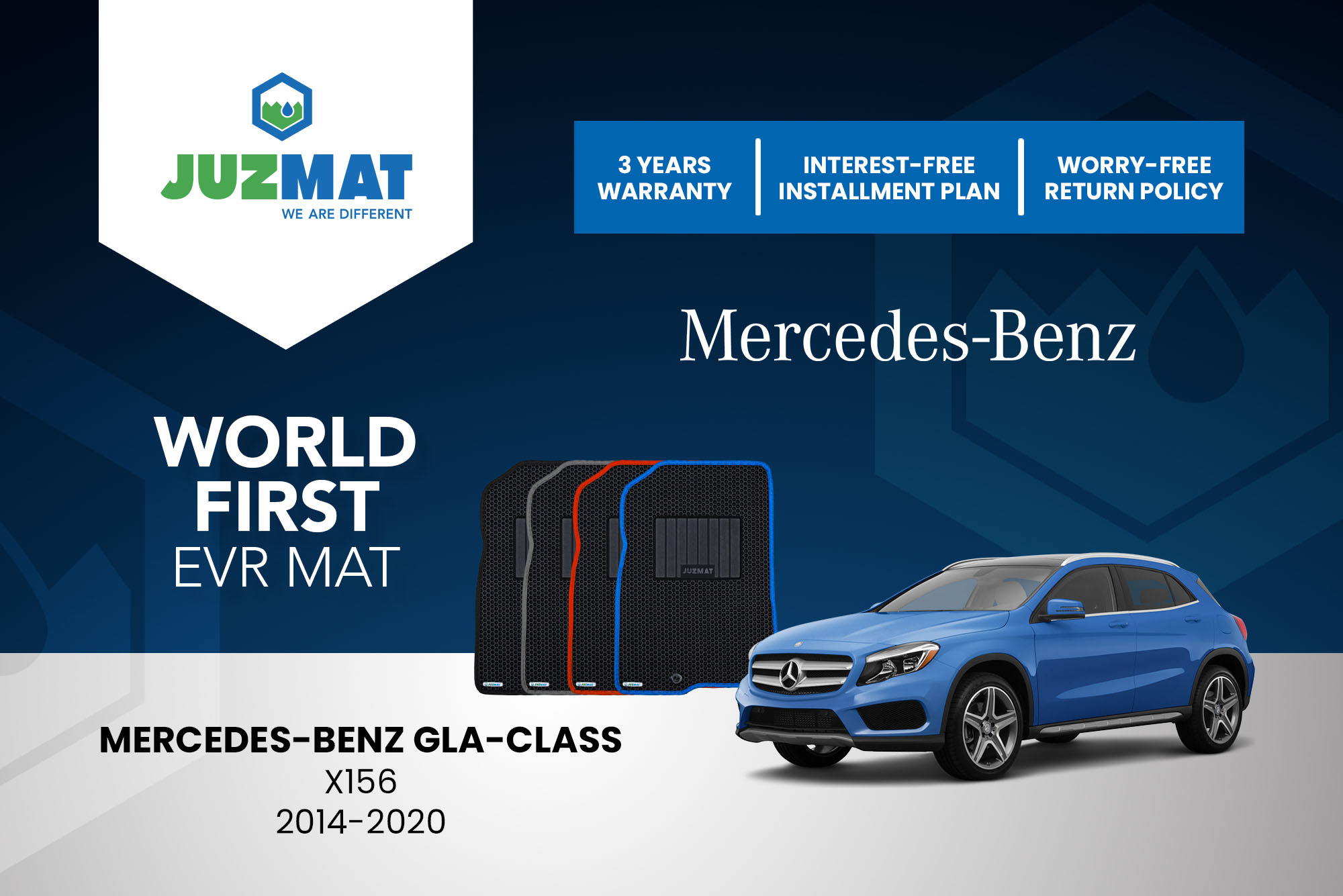 All our car mats are made to measure to ensure the perfect fit for your specific model. Juzmat EVR mat is 10x more durable than your regular mat. Shop confidently with our 3 years warranty promise!