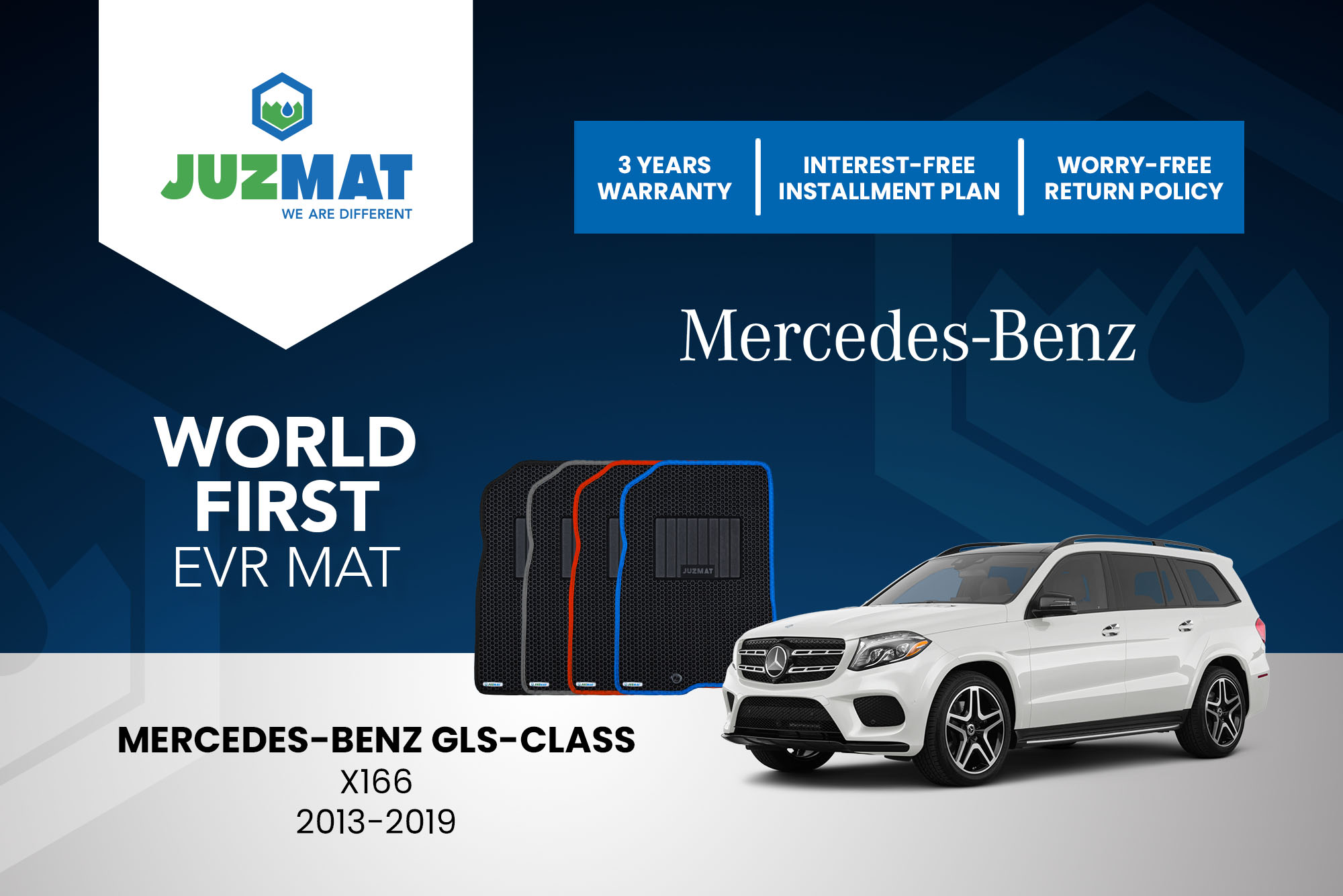 All our car mats are made to measure to ensure the perfect fit for your specific model. Juzmat EVR mat is 10x more durable than your regular mat. Shop confidently with our 3 years warranty promise!