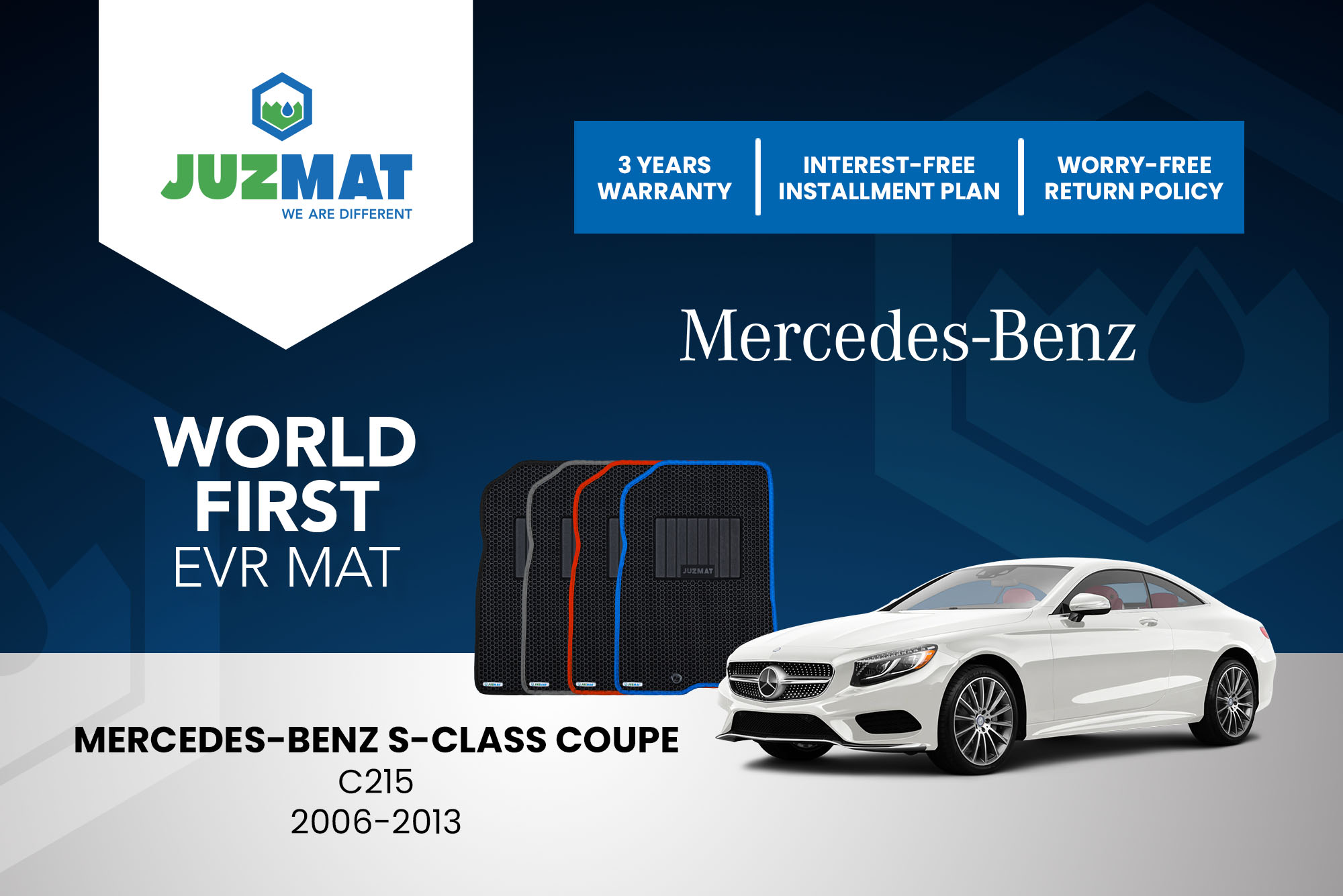 All our car mats are made to measure to ensure the perfect fit for your specific model. Juzmat EVR mat is 10x more durable than your regular mat. Shop confidently with our 3 years warranty promise!