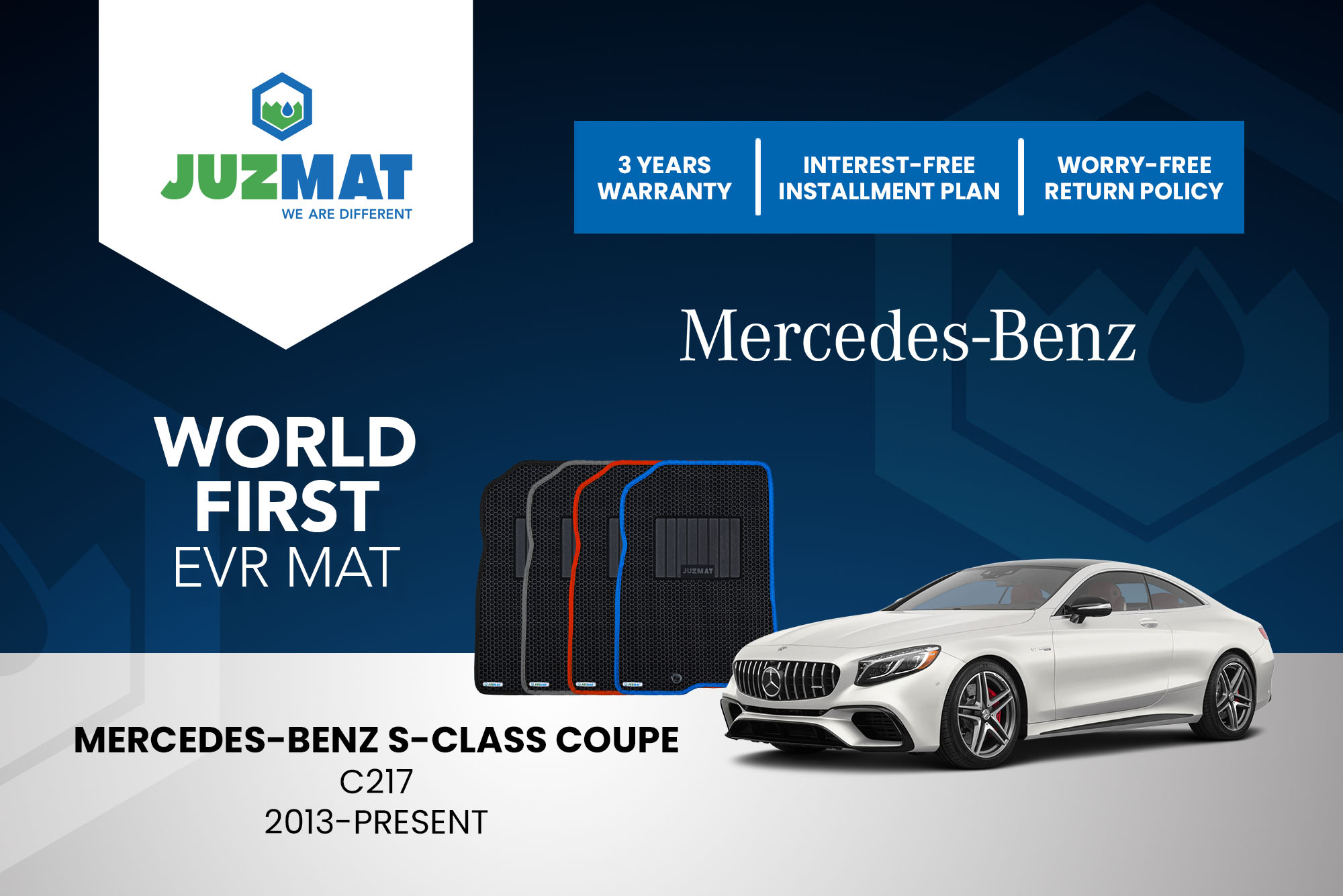 All our car mats are made to measure to ensure the perfect fit for your specific model. Juzmat EVR mat is 10x more durable than your regular mat. Shop confidently with our 3 years warranty promise!