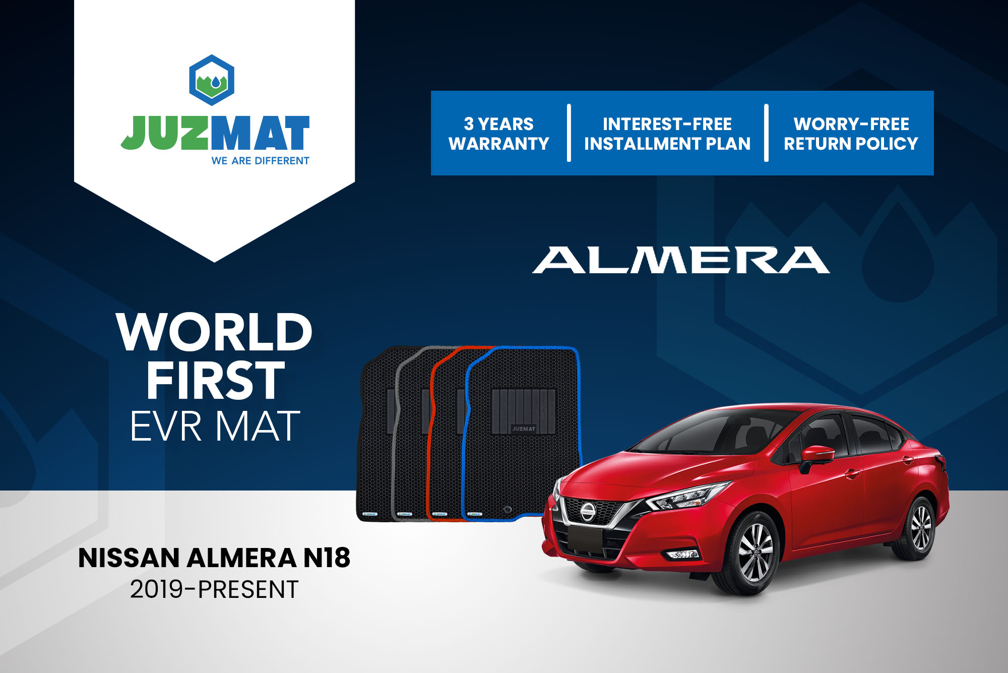 All our car mats are made to measure to ensure the perfect fit for your specific model. Juzmat EVR mat is 10x more durable than your regular mat. Shop confidently with our 3 years warranty promise!