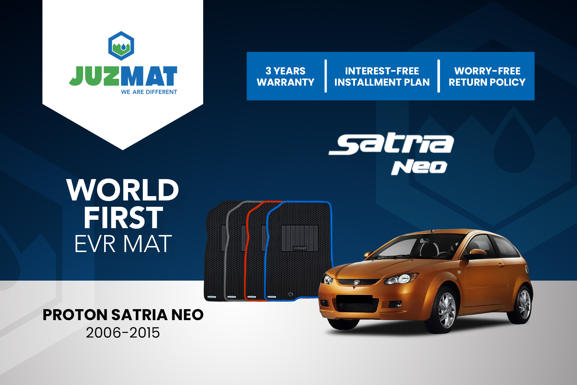 All our car mats are made to measure to ensure the perfect fit for your specific model. Juzmat EVR mat is 10x more durable than your regular mat. Shop confidently with our 3 years warranty promise!