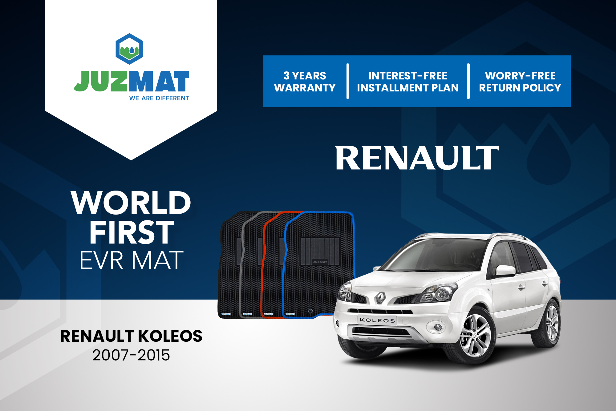 All our car mats are made to measure to ensure the perfect fit for your specific model. Juzmat EVR mat is 10x more durable than your regular mat. Shop confidently with our 3 years warranty promise!