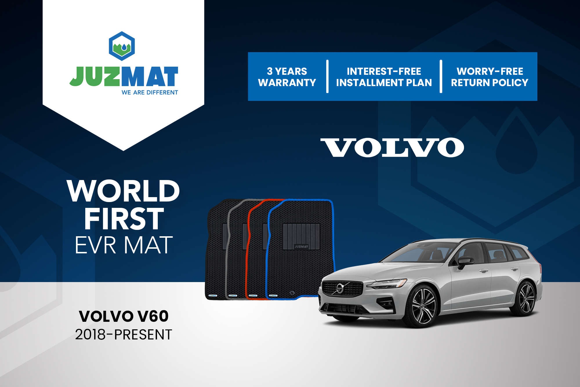 All our car mats are made to measure to ensure the perfect fit for your specific model. Juzmat EVR mat is 10x more durable than your regular mat. Shop confidently with our 3 years warranty promise!